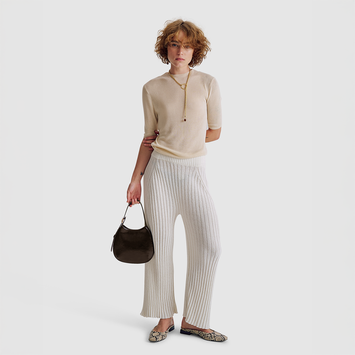 The shoulder strap is detailed with brushed gold hardware and an adjustable fit, designed to rest comfortably under the arm. Perfect for pairing with tailored essentials or relaxed silhouettes.