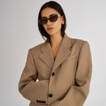 Bold in all the right ways, the Sutton in dark chocolate by Luv Lou is a wide cat-eye frame with sharp lines and thick temples, balanced by subtly curved metal detailing that adds a refined touch. Designed to frame the face with confidence, this style is equal parts statement and staple..