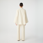 The Alma Jacket is a classic chore coat in a relaxed silhouette. Made from 100% cotton with a soft hand-feel, it’s designed to feel effortless while still holding its shape. The oversized fit, raglan sleeves and wide cuffs give it a clean, sculptural silhouette. Contrast buttons add just the right amount of detail. Finished in a soft bone tone that pairs with everything. Easy to wear now, and for seasons to come.