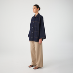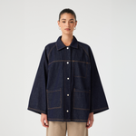 The Alma Jacket offers a modern take on denim, crafted from soft 100% cotton with a clean finish and in a relaxed fit. An oversized silhouette with raglan sleeves, contrast buttons, and patch pockets brings relaxed structure and quiet utility.