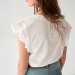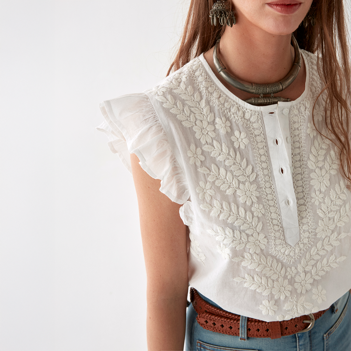 The Ashanti Blouse by Maison Hotel floats between soft sophistication and poetic ease. In a pale ivory, this blouse breathes with subtle structure—feminine gathers tracing gentle lines across the silhouette, and fabric that moves like a quiet sigh.