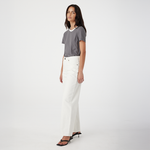 The Avril Mid Slouchy Wide Jean by Outland Denim in white is a relaxed, low-slung silhouette that sits just below the navel, with a wide-leg that falls freely over your shoes. The “slouchy” character gives a laid-back feel, while the deliberate cut blends ease with structure.