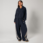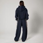 A contrast triple-stripe detail runs down each leg, adding definition and movement to the clean, minimal base. Style it with the matching Cropped Hoodie — this is off-duty dressing done with intention.