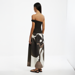 The off-shoulder twist strap adds unexpected charm — whether strolling sunlit laneways or gliding into evening cocktails, this maxi swings with artful movement.