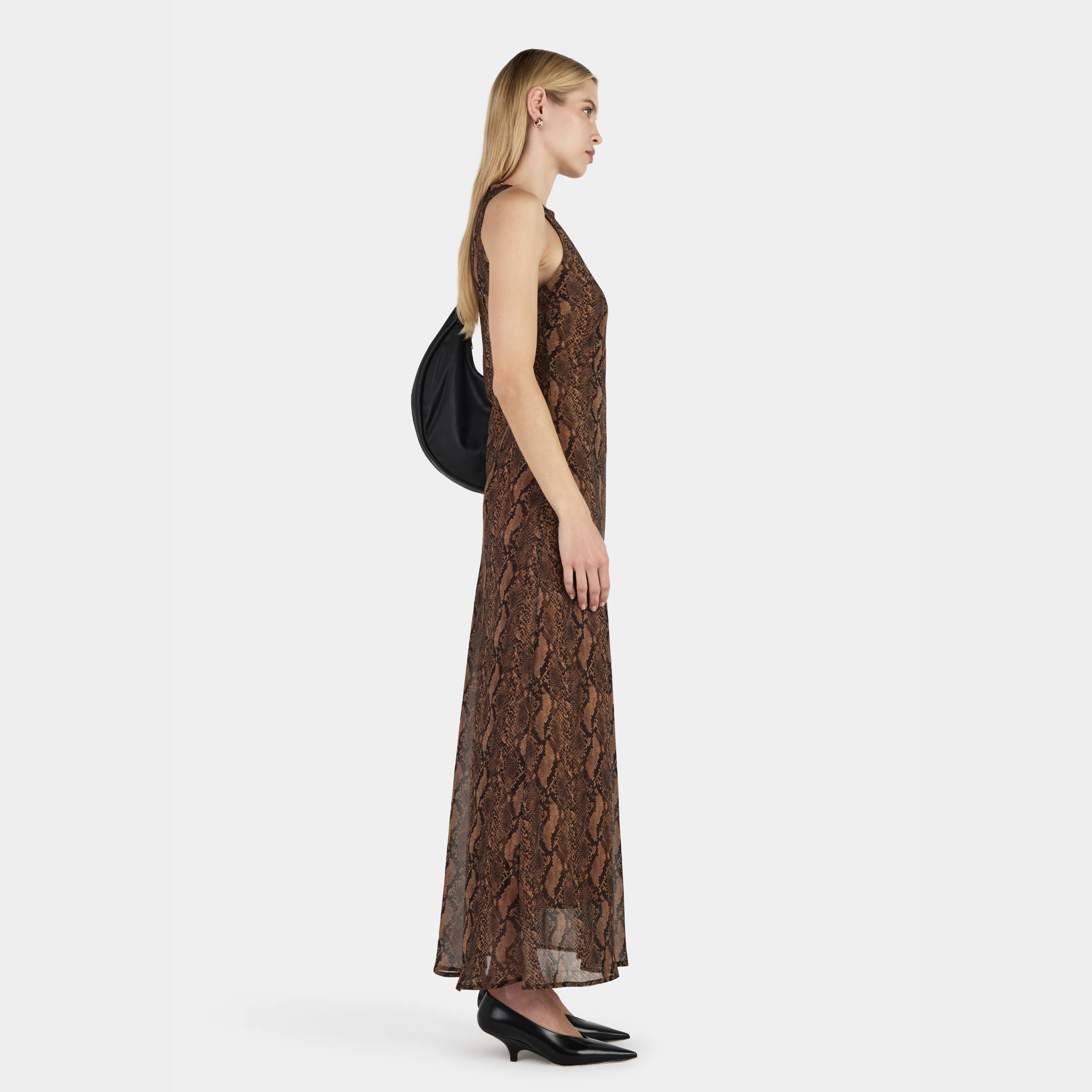 The Elle Dress is a bias cut slip dress with a high neckline and thick straps. The dress is maxi length and has a back neck keyhole. Dress up with strappy heels or pair back with ballet flats. A dress you'll want to wear on repeat.