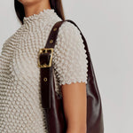 This classic shape is uncomplicated and effortless, the Everyday Croissant Bag in chocolate features gold hardware and an adjustable shoulder strap to sit comfortably against the body.