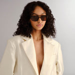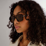 The Dusty by Luv Lou in Classic Tort is your true vintage aviator frame — large in structure but soft when shaping your face. The style features subtle gold rivets on the outer arm temple and is a nod to the 70's era.