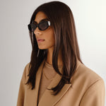 The Juliet by Luv Lou is a slim cat eye frame inspired by the 90’s. It features signature gold initial hardware on the temples of the frame which elevates its design. It is giving model off duty vibes.