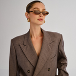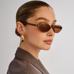 A perfect blend of vintage allure and modern luxury, the Olive in Chocolate crystal by Luv Lou features a small, round-oval frame with thin, delicately sculpted sides for an understated yet polished look. The organic L hardware on the temple adds a distinctive touch of sophistication, making this frame an exquisite statement of timeless refinement.