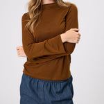 An easy-wearing lightweight jersey, the Weekender Long Sleeve is a bulk-free layering essential. This relaxed fit is crafted in a refined tencel-wool stretch blend with a chic mock neck and slightly flared sleeves. The perfect layering piece for the trans-seasonal wardrobe, wear with denim and layered under a jacket for those off-duty errands.