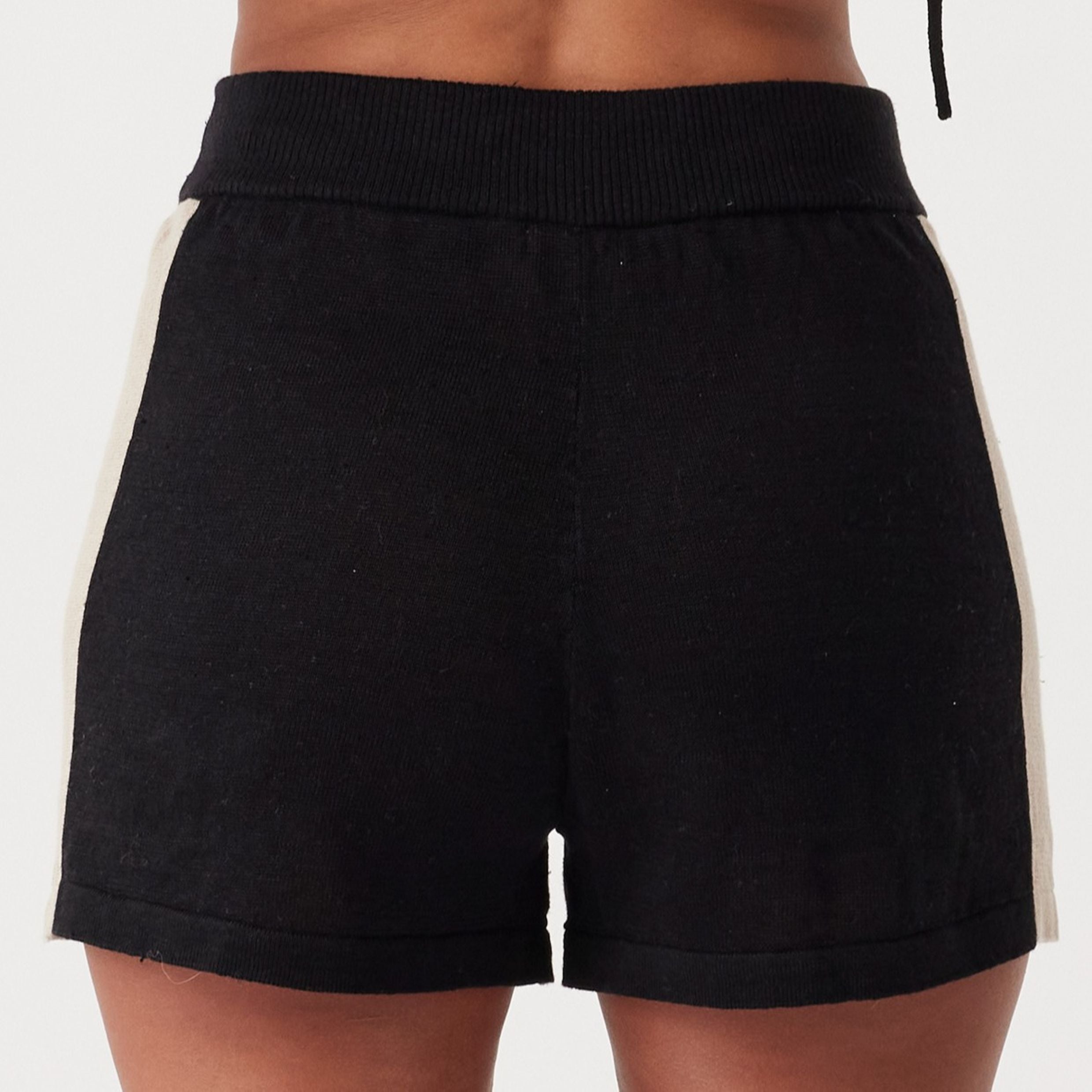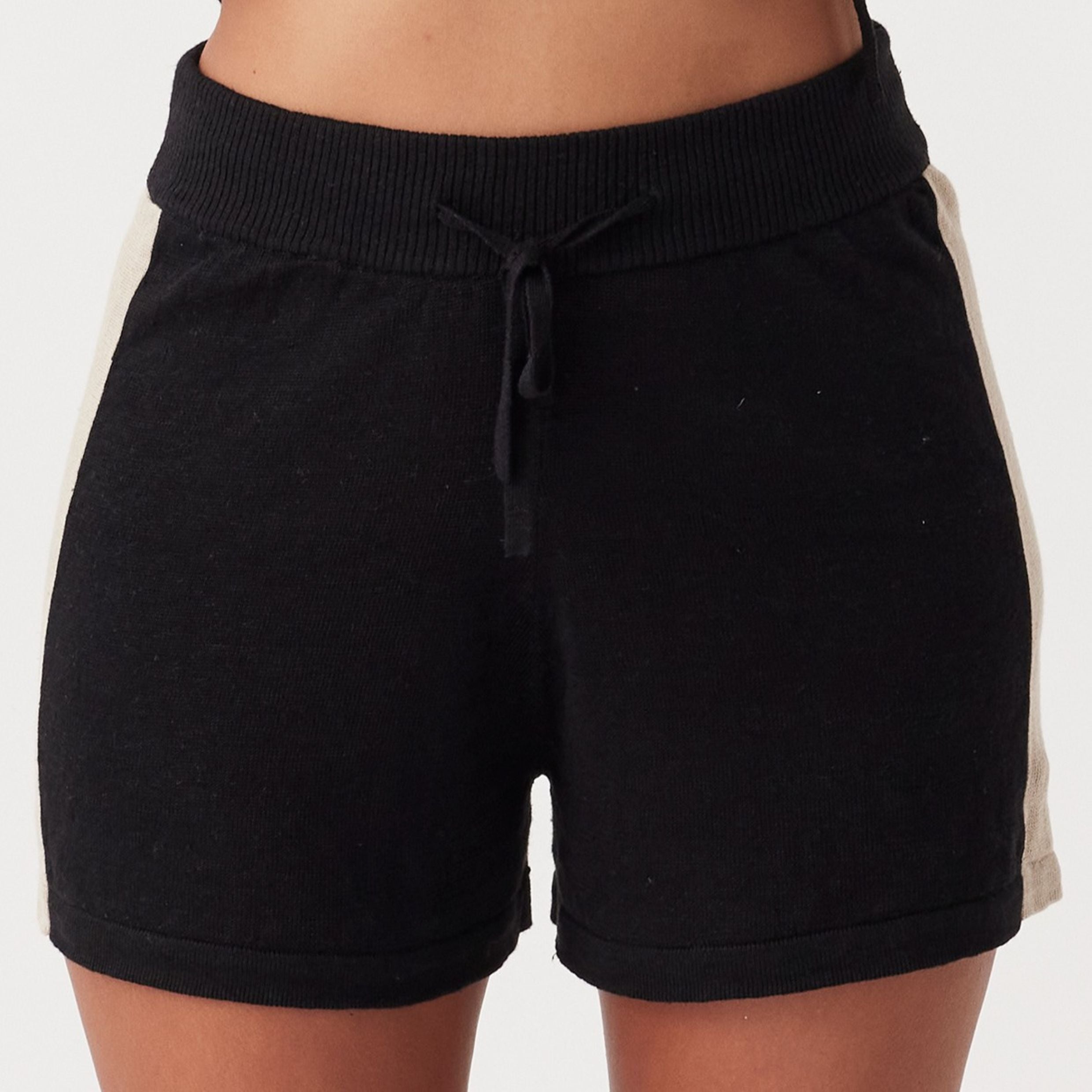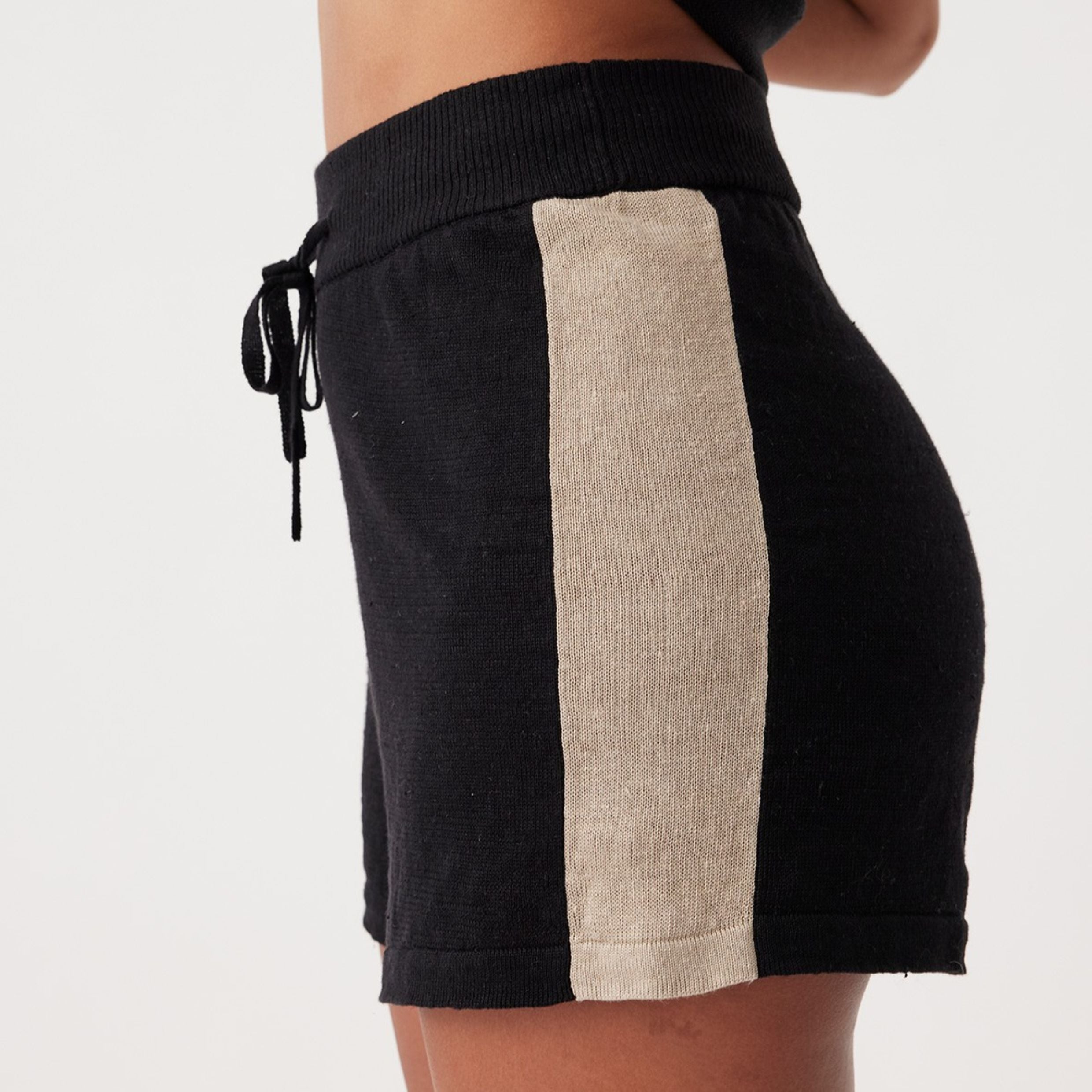 The Larri Linen Knit Short in Black & Taupe combines modern contrast with effortless style. Featuring a breathable knit, sporty fit, elastic waist, and a contrast side stripe, it’s designed for versatile wear.
