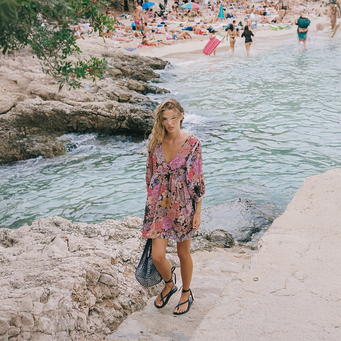 The Valley Mini Dress by Auguste The Label is a shimmering floral-jacquard staple crafted in their signature cotton with gold lurex threading. It’s styled with a flattering V-neckline, button-front bodice, and voluminous three-quarter sleeves. The waist is softly gathered for a floaty silhouette, all finished with a separate slip.