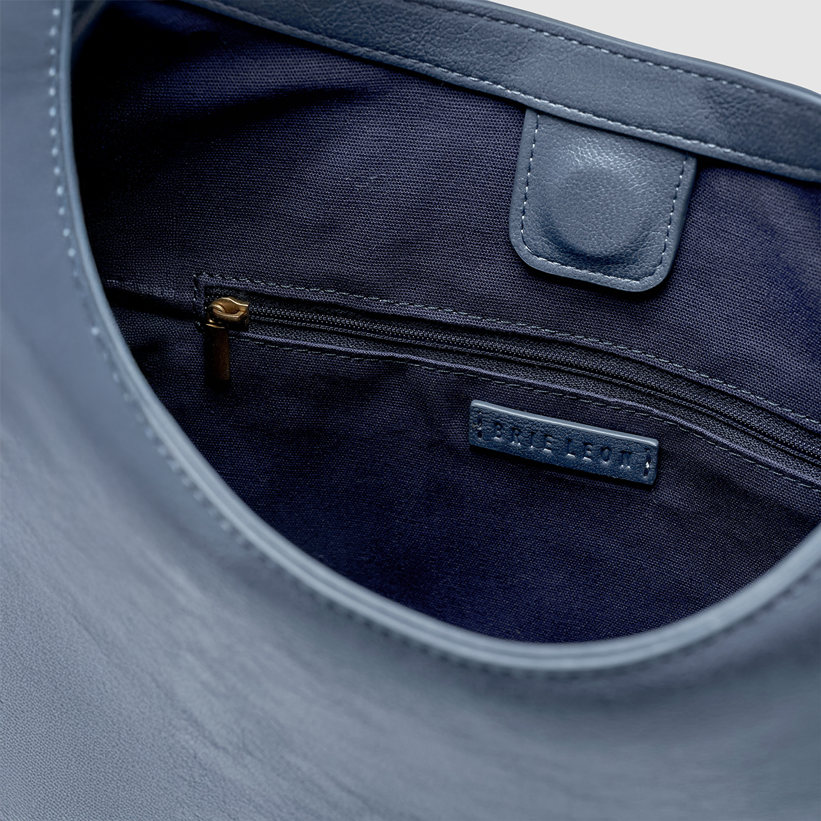 The Organica Day Bag in Mid Denim by Brie Leon balances sculptural lines with everyday function. Softly rounded with subtle structure, it features an adjustable shoulder strap and organised interior.