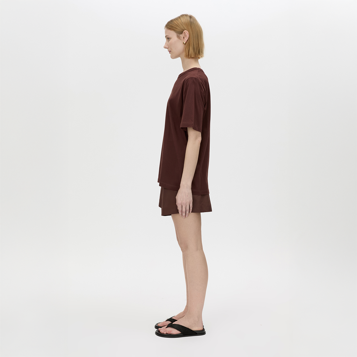 The Janice Logo Tee in chocolate by Camilla & Marc is crafted from traceable cotton with an anti-fluff finish, offering a crisp smooth appearance wear after wear. This relaxed tee features a ribbed crew neckline and a bold plastisol artwork across the bust.