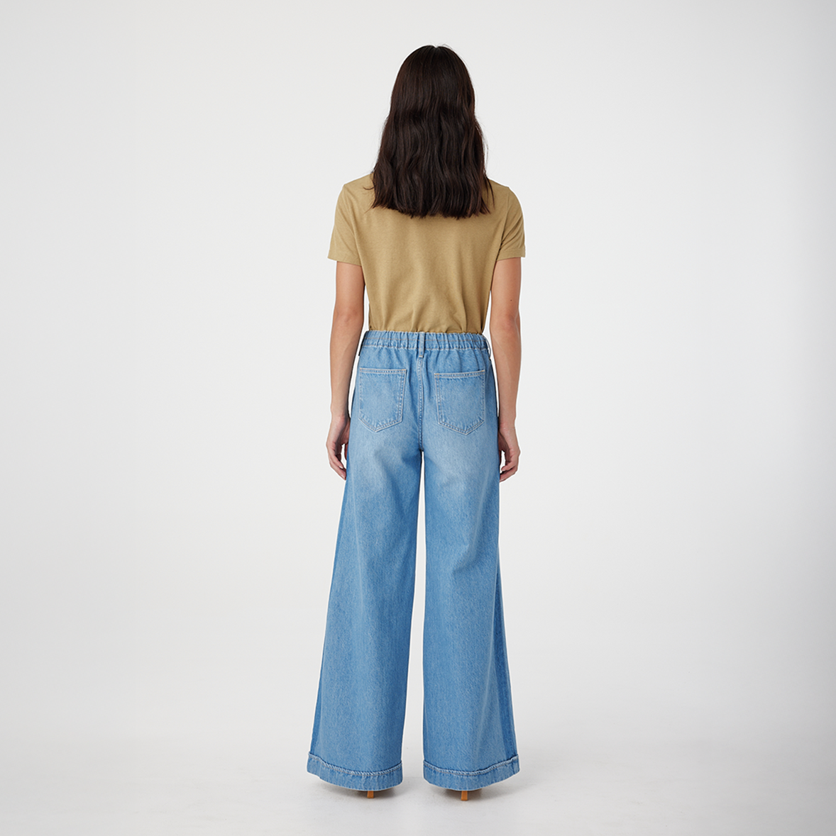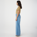 The Lotus Pant - Bluejay by Outland Denim is a relaxed mid-rise style with a wide-leg silhouette. Designed with an elasticated back waistband, removable self-fabric belt and deep side pockets, this versatile pant is made to move effortlessly from casual to statement styling.