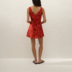 The Graciela Mini Dress by Faithfull The Brand is a romantic mini in recycled georgette crepe, patterned with the Pirazzo Floral in rosso. Cut with a deep V-neckline and subtle under-bust stitching, it skims the body and finishes with adjustable back waist ties.