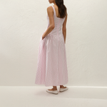 Rooted in vintage inspiration, the Marcella Midi Dress from Faithfull the Brand is designed in a nostalgic pink and red pinstripe, yarn-dyed into the label’s signature cotton. Fitted through the bodice with a soft scoop neckline and gathered bust, it offers a feminine shape that feels effortless and wearable.