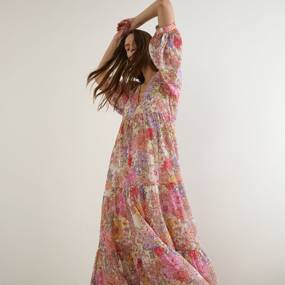 Featuring a floaty, tiered maxi skirt and included separate slip for comfort and coverage, it’s a go-to dress for sunlit days or elegant evenings alike.