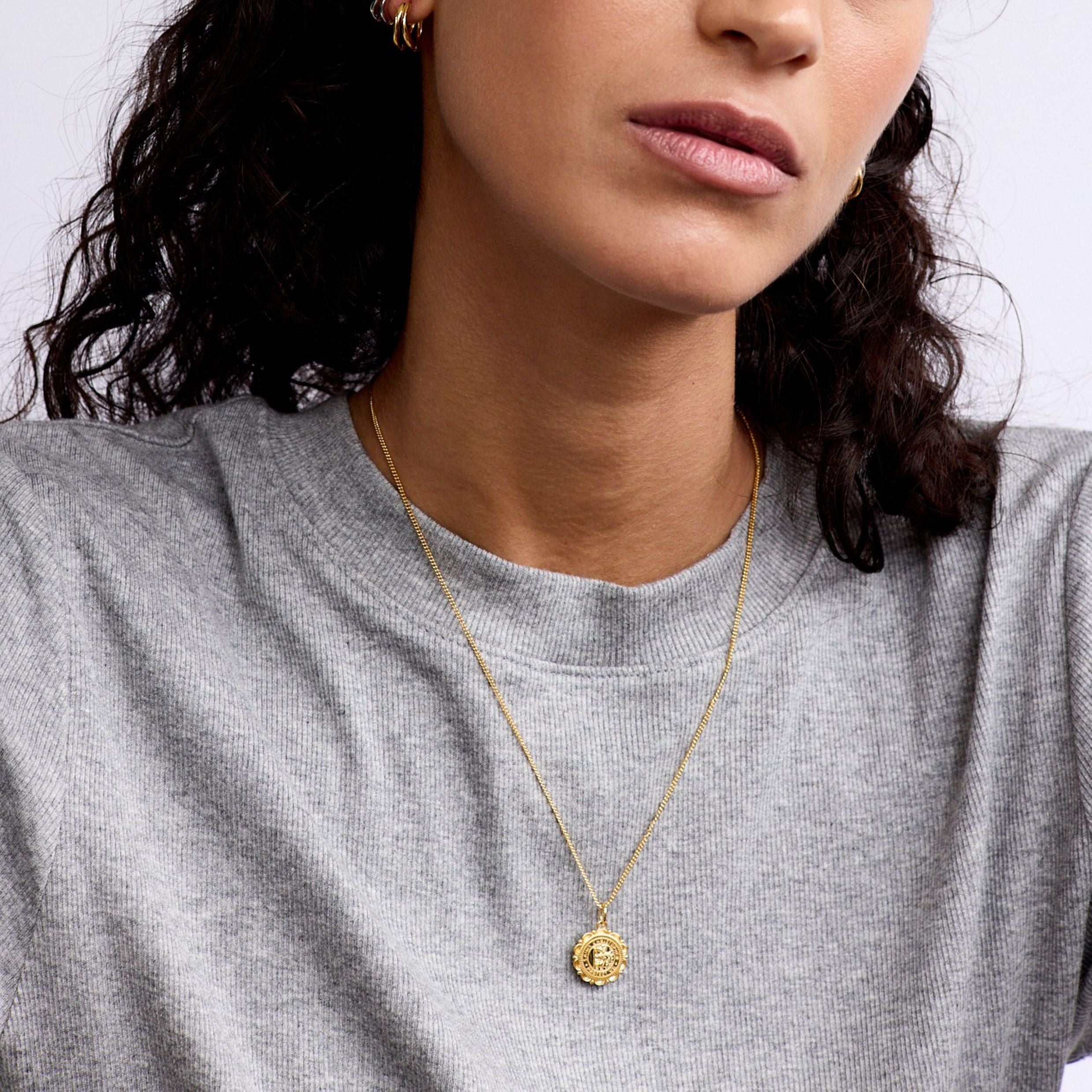 The pendant is elegantly suspended from a versatile simple gold chain in the perfect length to add modern minimalism and classic sophistication to every outfit. The perfect everyday pendant necklace to wear on it's own; or stack with other necklaces.