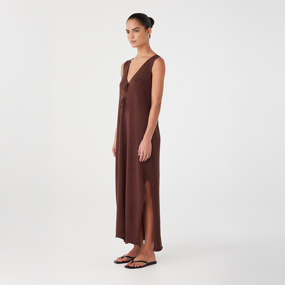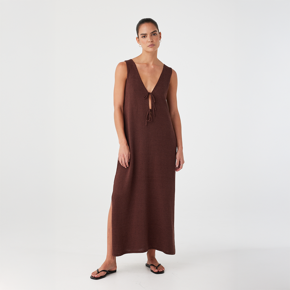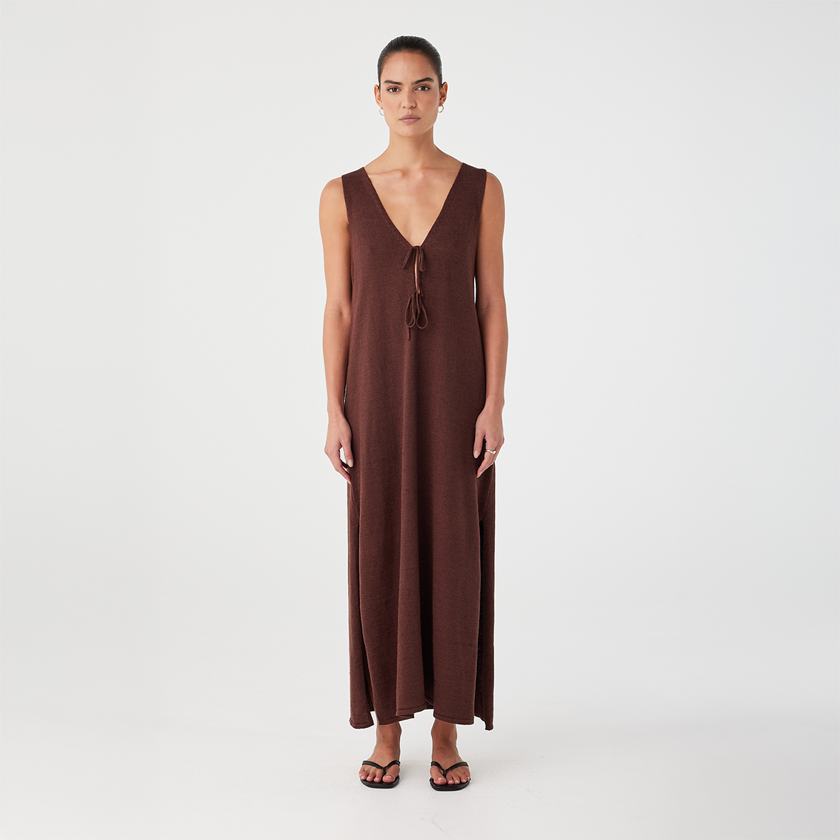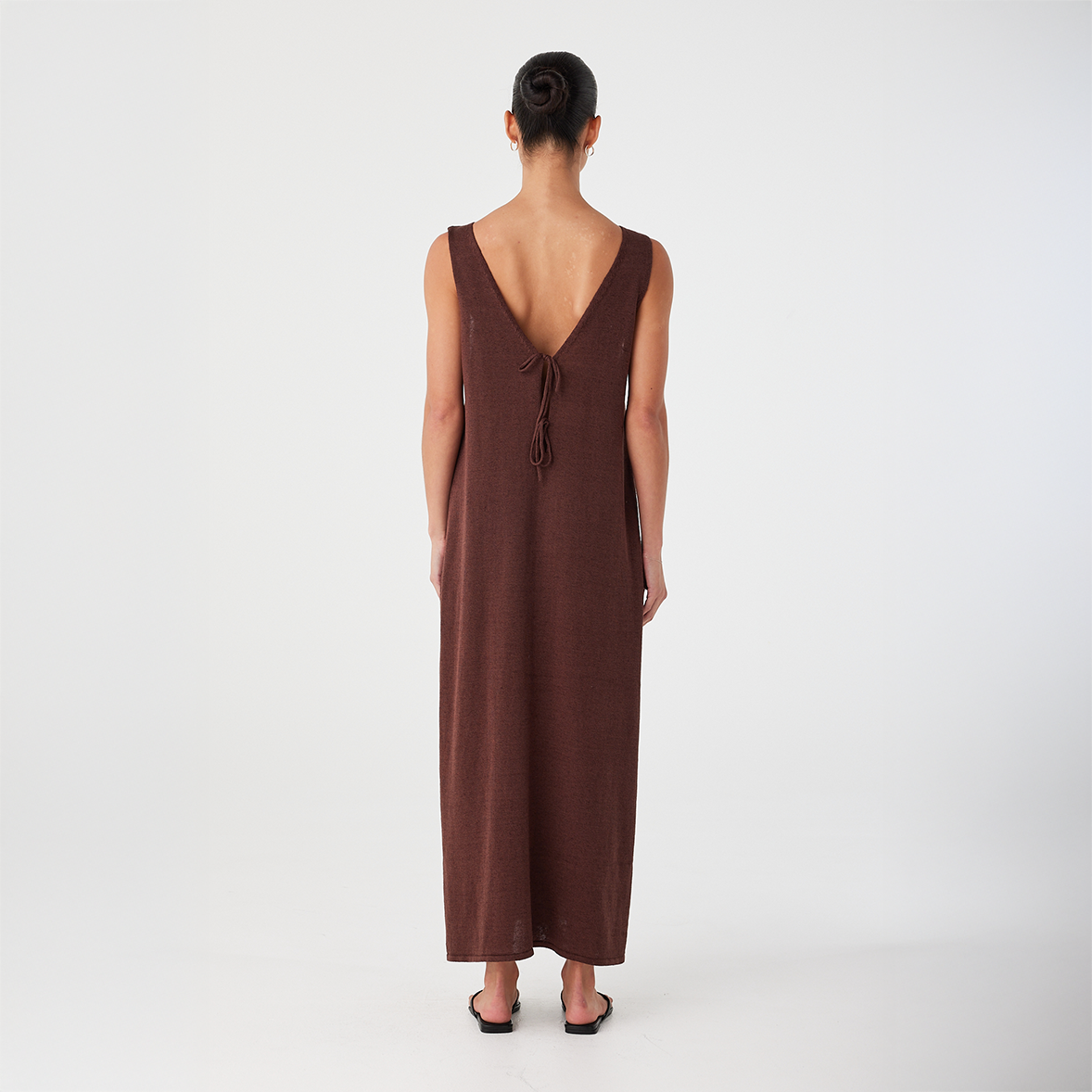 The Poppy Maxi Dress in Chocolate by Arcaa Movement is an elevated everyday dress with a relaxed column silhouette. Designed for movement and ease, it falls to a full length with understated refinement.