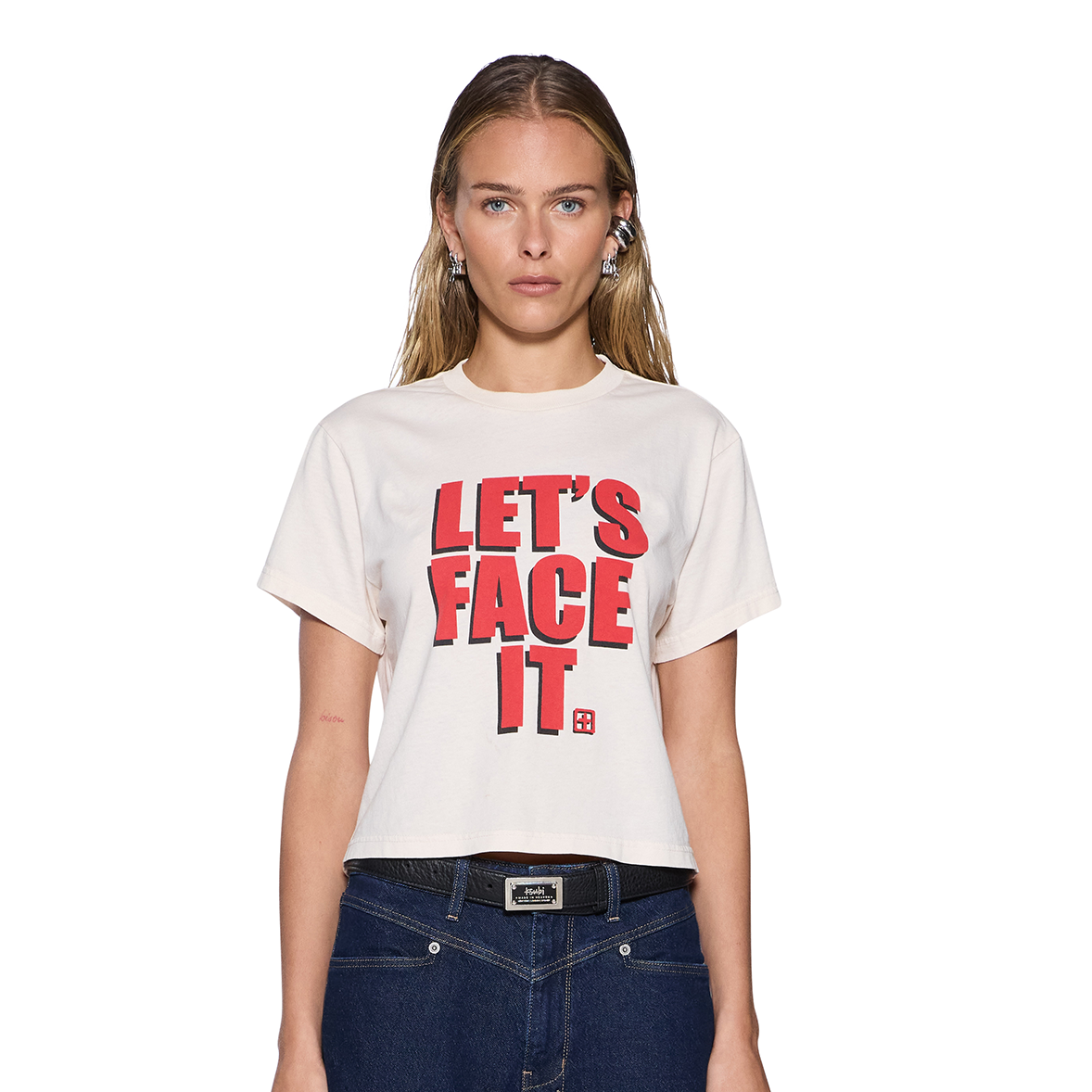 The Lets Face It Shrunken Tee in Bone from Ksubi is a relaxed short sleeve mini tee designed with a cropped length and classic crew neckline. Cut from premium mid-weight cotton jersey in a seasonal bone colourway, it delivers structure with everyday wearability.