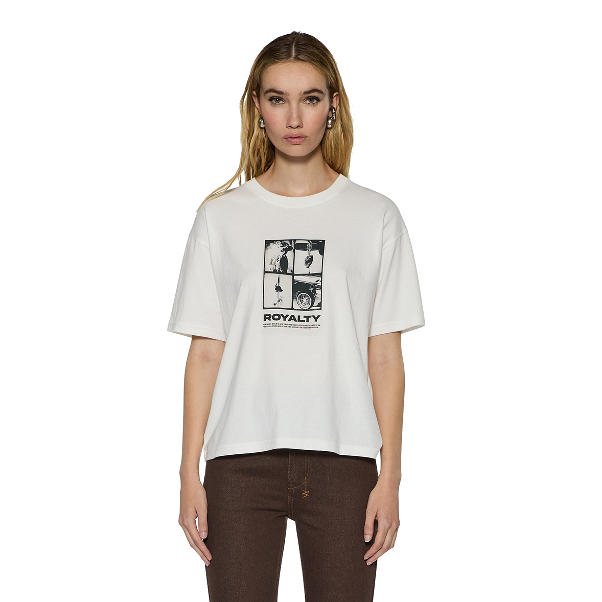 The Royalty Everyday Tee by Ksubi is is your regular, boxy silhouette that hits right at the hip. Cut from premium mid-weight cotton jersey in vintage white, it’s soft yet structured with an easy drape. Finished with an exclusive Ksubi 'Royalty' graphic on the front and the signature T-box embroidery at the hem. Clean, wearable, and made for repeat rotation.