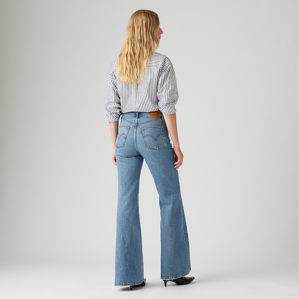 The expansive flare elongates the leg while the elevated silhouette can be dressed up with boots or grounded with sneakers for classic versatility.