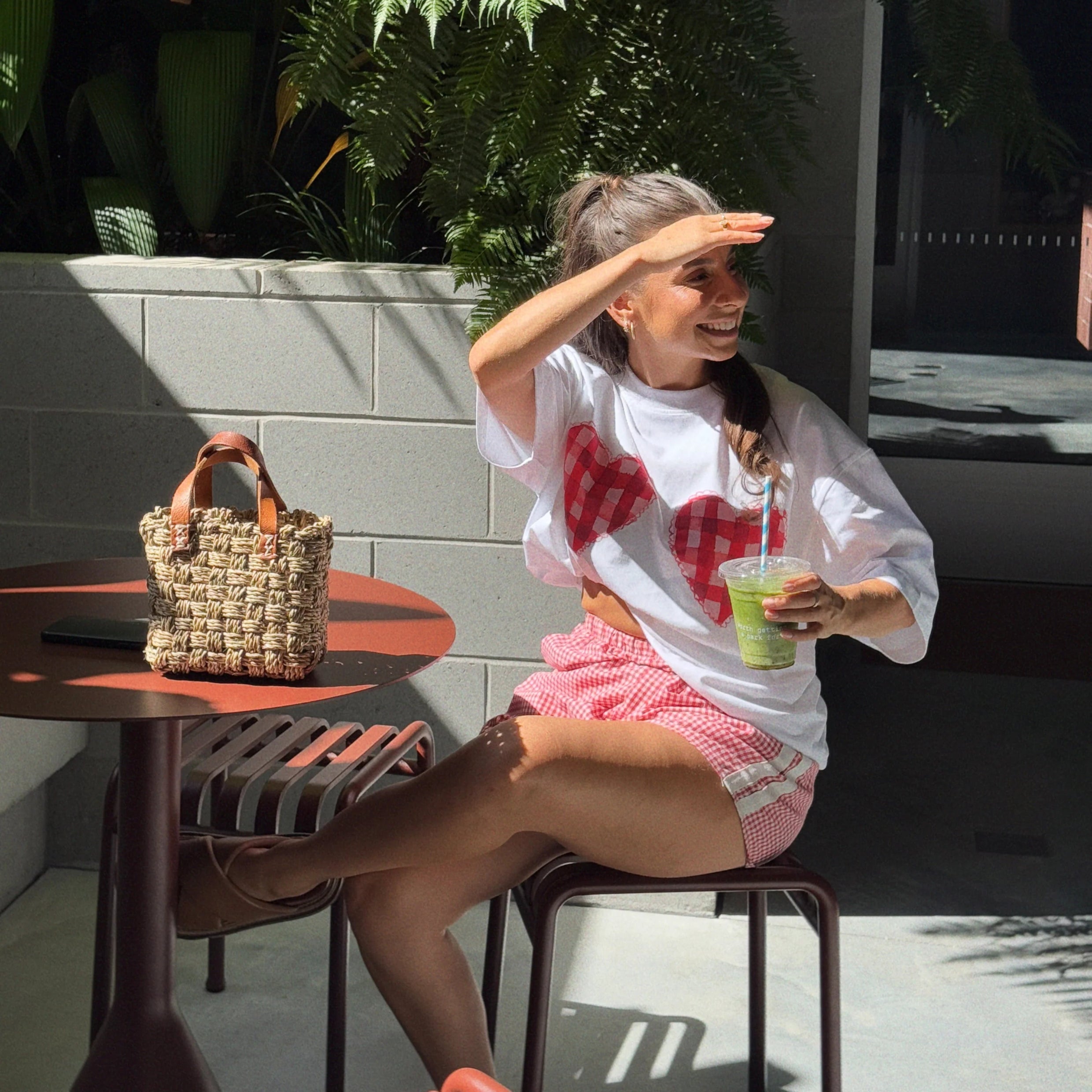 The Gingham Hearts Tee by Maku is a classic oversized tee and an essential in any wardrobe. Crafted from 100% cotton, it features a buttery-soft hand feel and a hand-painted print that makes each piece unique. Choose your usual size for a relaxed fit, or size down for a more fitted look.