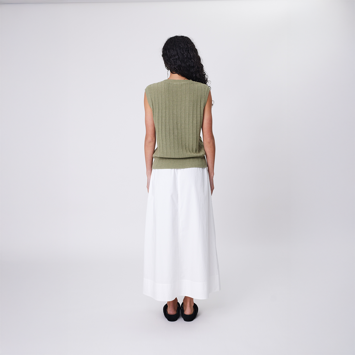 - Rib neckline, armhole and hem