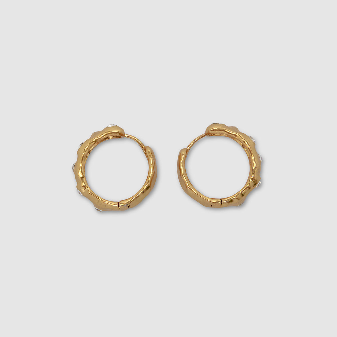 The Asta Hoops in Gold & White from Brie Leon are a refined hoop earring with a subtle nod to the polka dot. Crafted from a solid brass base and finished in 24k gold plating, each organic hoop is detailed with intentionally placed white cubic zirconia stones—delicate points of light that move softly with the wearer.