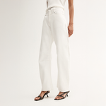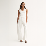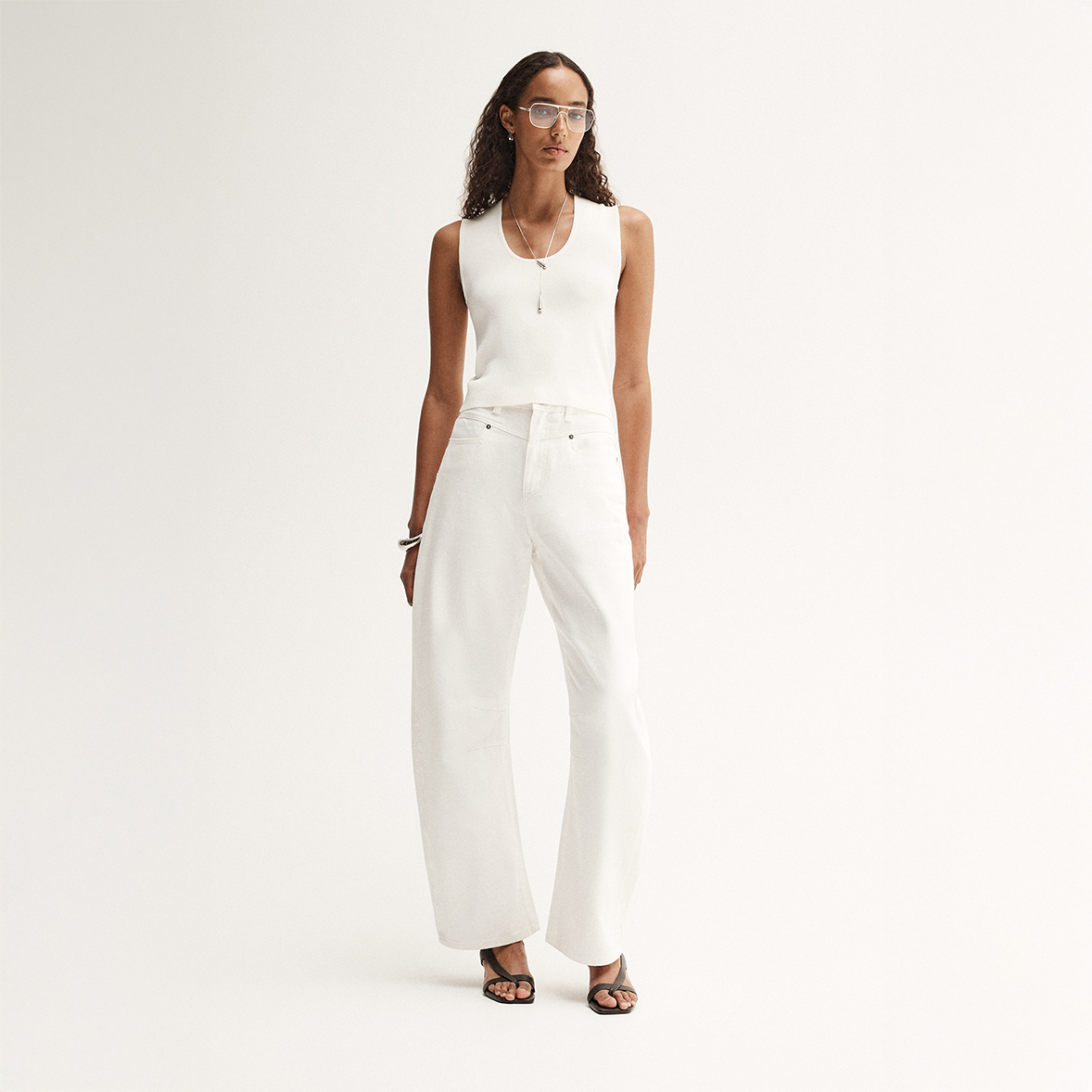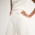 The Chelsea Denim Jean in White from Elka Collective is a modern denim style designed with a barrel leg silhouette. Cut to a mid-rise waist from rigid, low-stretch cotton denim, it offers structure with everyday versatility.