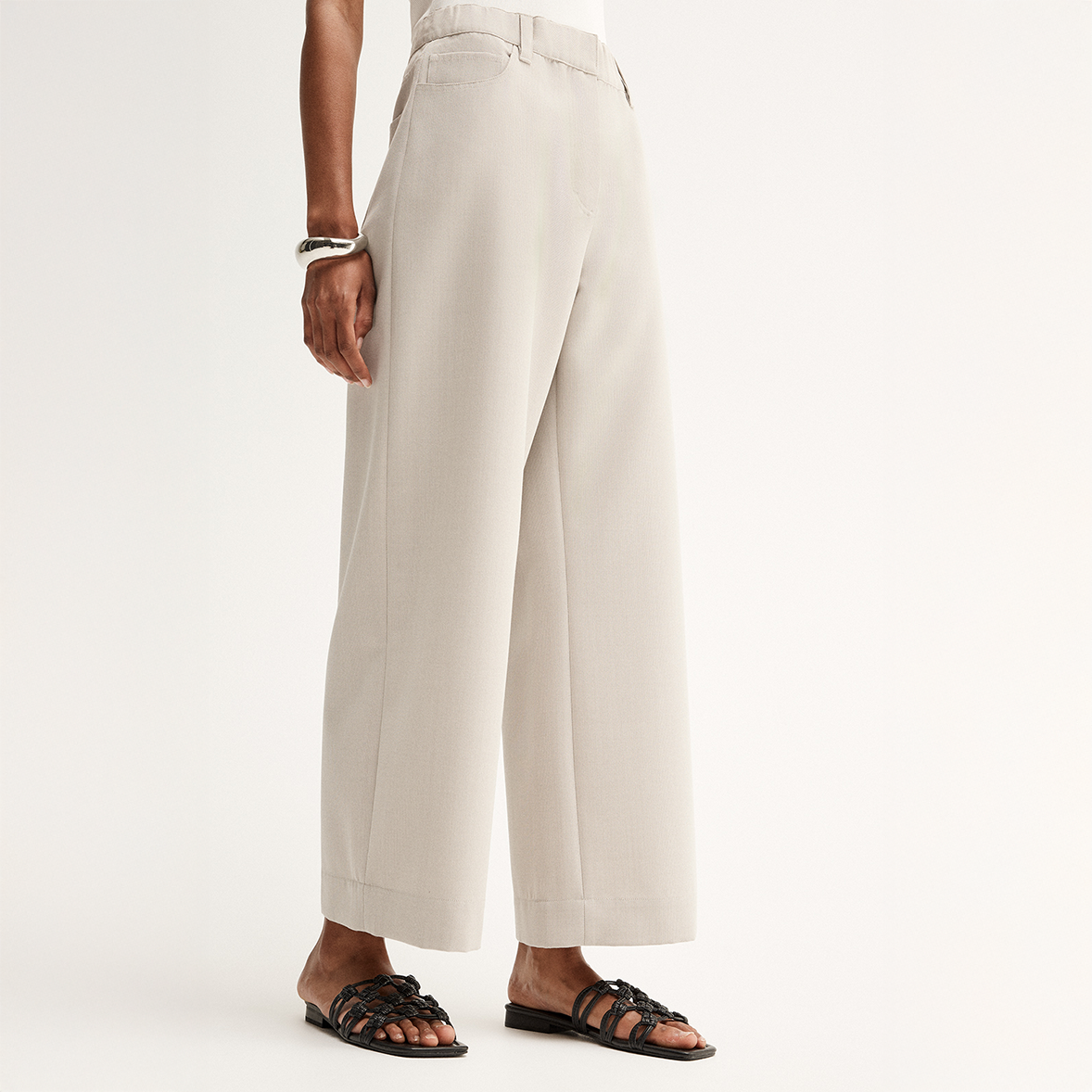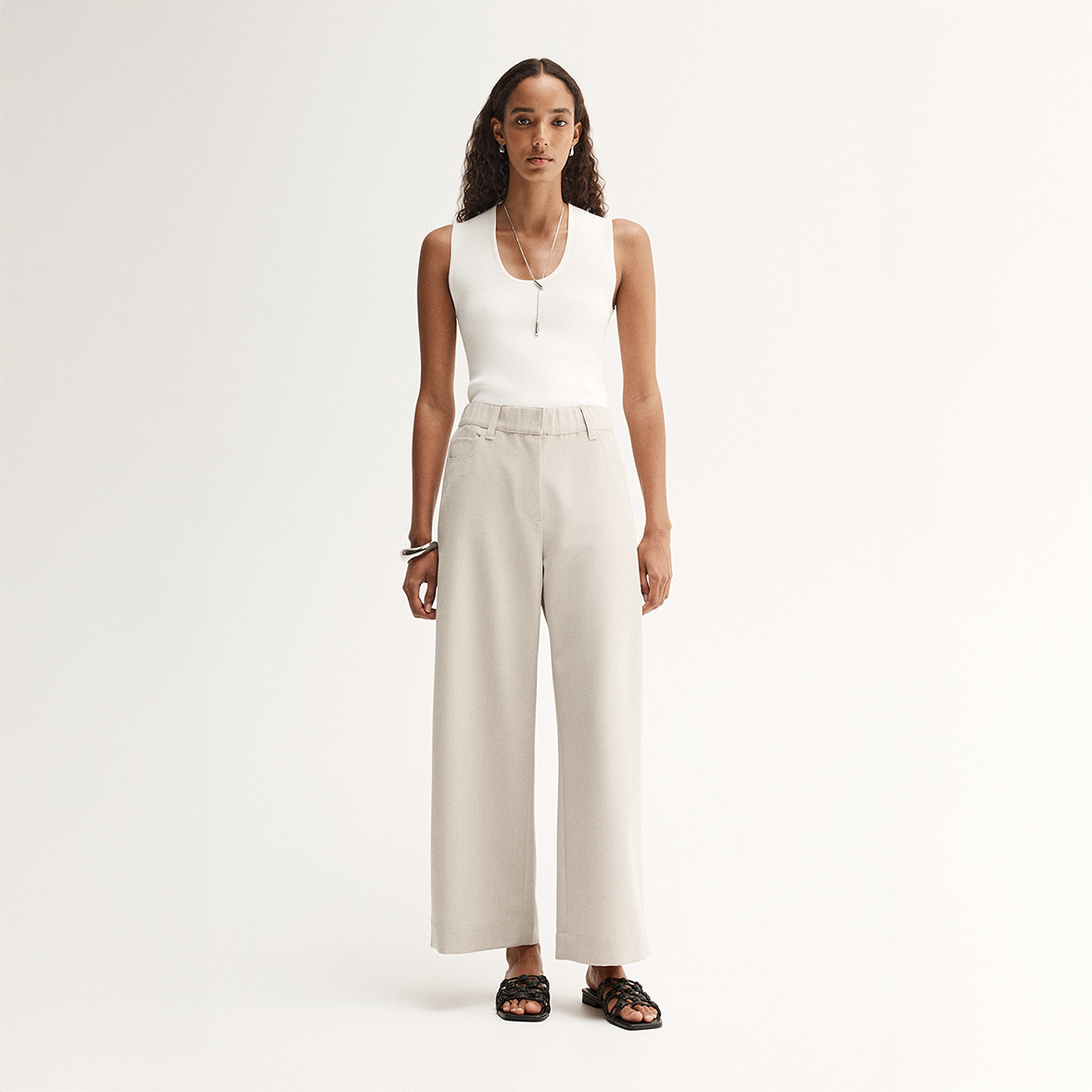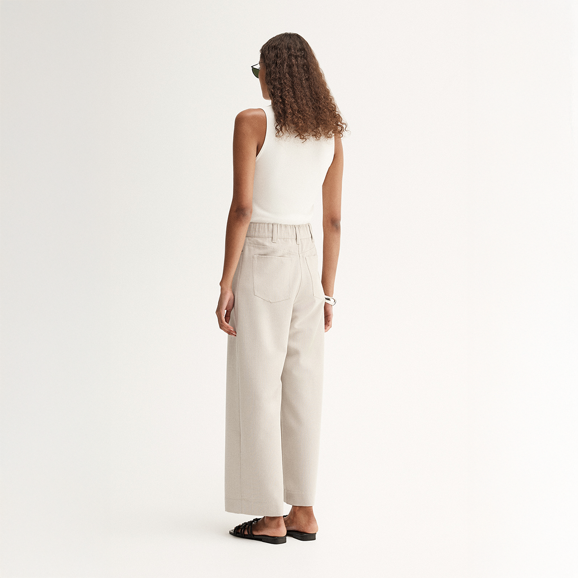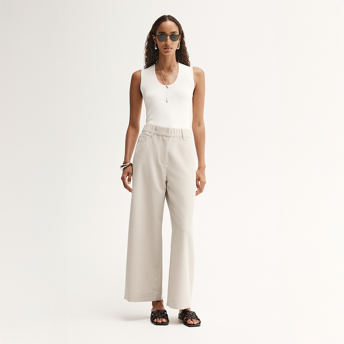 The Nova Pant in Pebble from Elka Collective is a modern take on timeless tailoring. Crafted from a textured wool-blend fabric, it features a cropped ankle length and an elasticated waistband for ease and comfort.