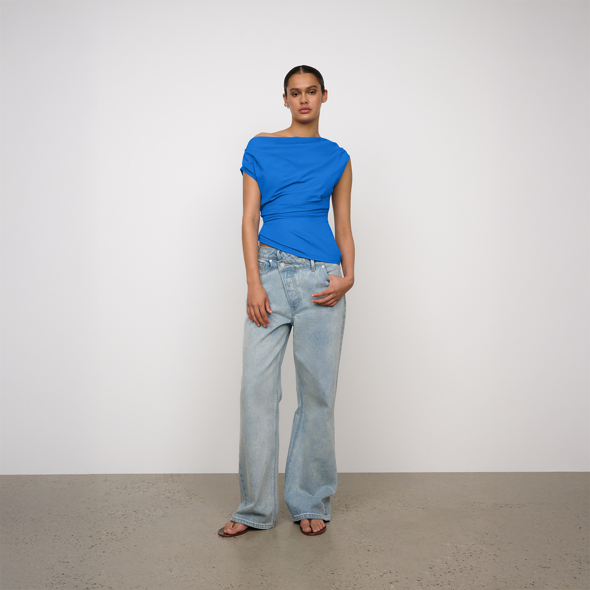 The Pallas Top is a One of Others best seller, now in the new season Sonic Blue colourway. Crafted from lightweight nylon with a fluid drape and fully lined in cotton, the Pallas top is a draped, off-shoulder top designed with soft tuck detailing, offering a refined silhouette that moves effortlessly with the body.