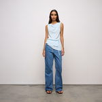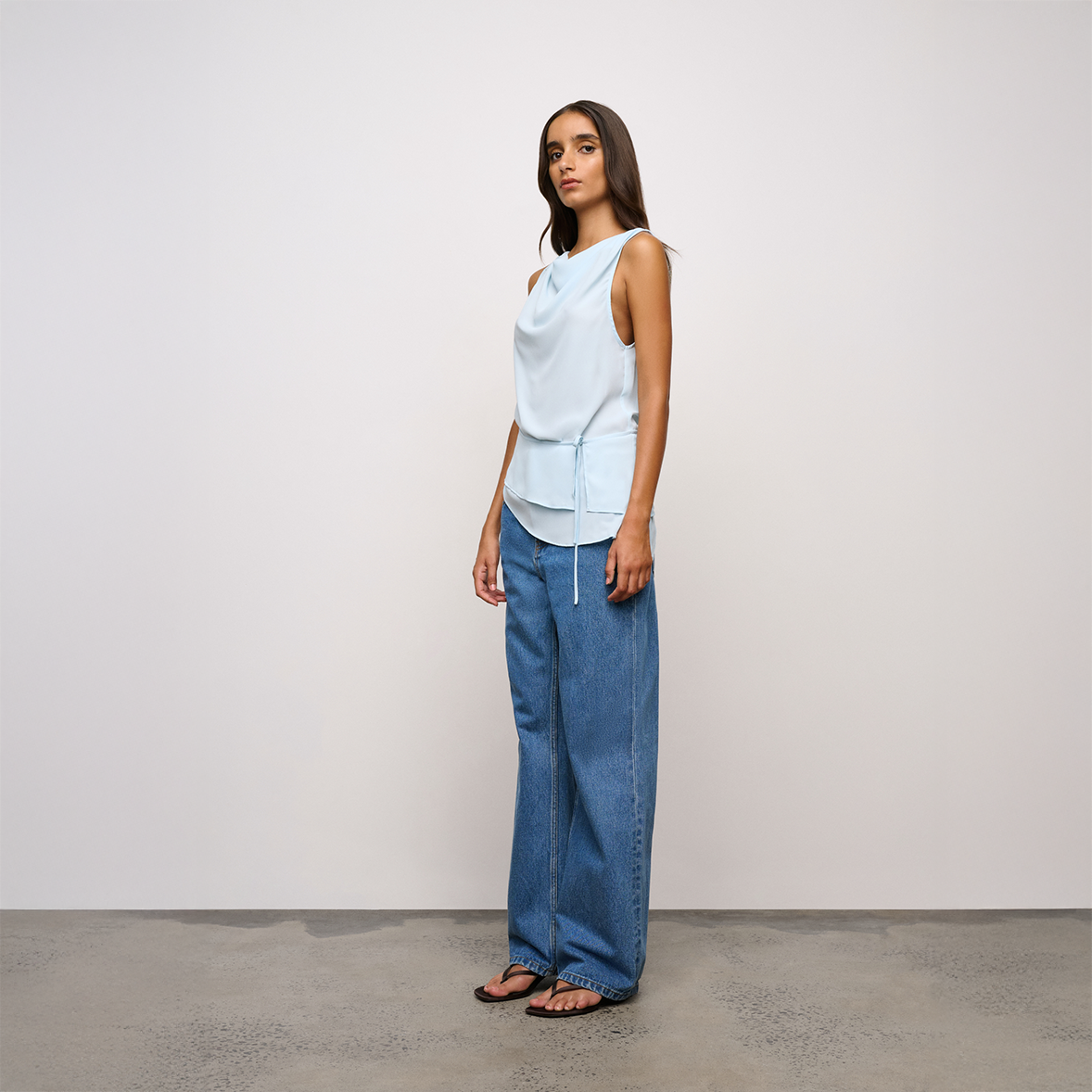 The Lennon Top by One of Others is a relaxed tank cut in lightweight CDC fabrication. Defined by its asymmetric hem and adjustable self belt, it can be styled with or without the belt for versatility.