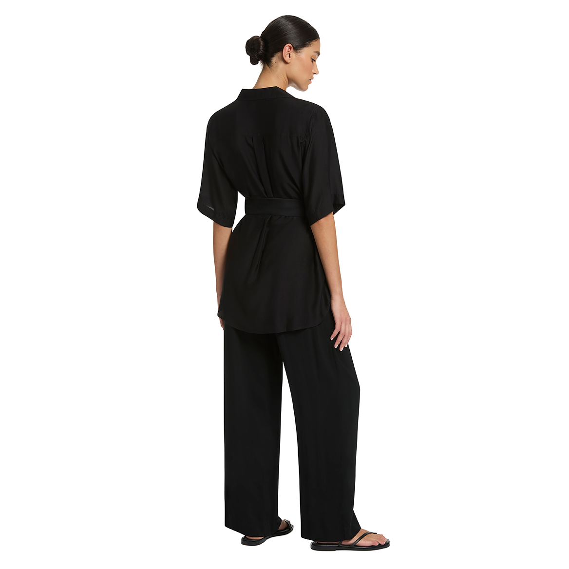 The Jetset Wide Leg Pants by JETS are resort‑ready and lightweight, cut in fluid viscose with a relaxed wide leg. A soft elasticated waistband and side pockets make them an easy pull‑on layer over swim.