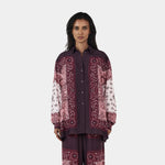 The Bahama Shirt is a Hansen & Gretel classic oversized button-down shirt in their signature print Barbera Tile. The shirt has a classic collar and placket, and a front bust pocket.
