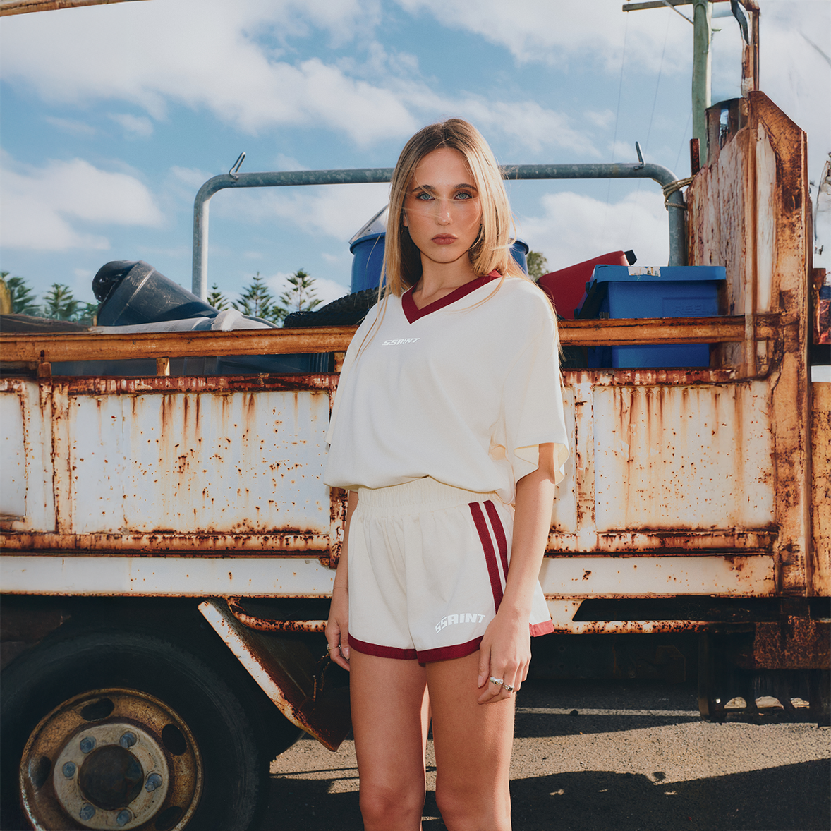 The Reflective V Shorts in butter by Ssaint are a relaxed retro-inspired short designed for everyday wear. Made with an elastic waistband for comfort, contrast binding for definition and the signature Ssaint reflective logo, they pair effortlessly with tanks, tees or the matching V Neck Tee.