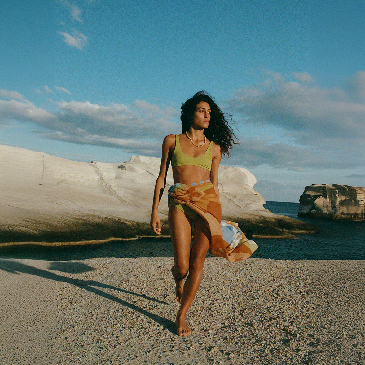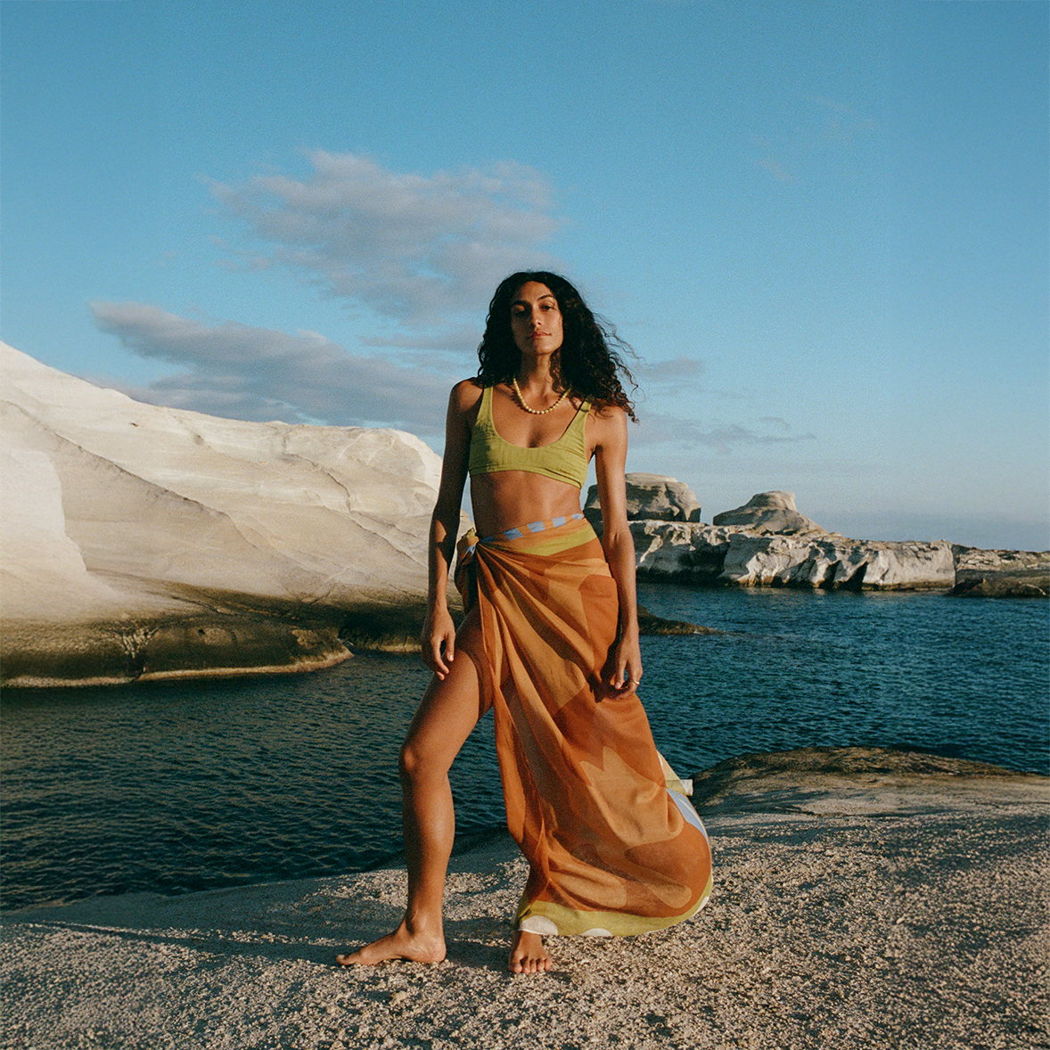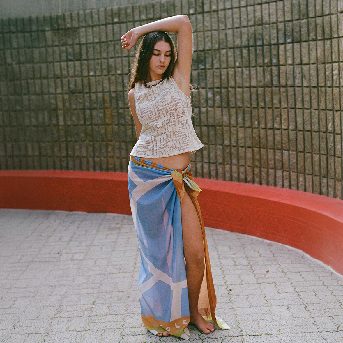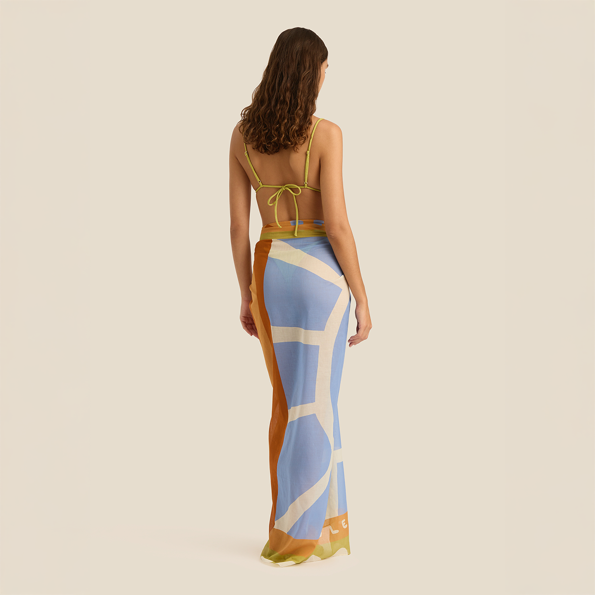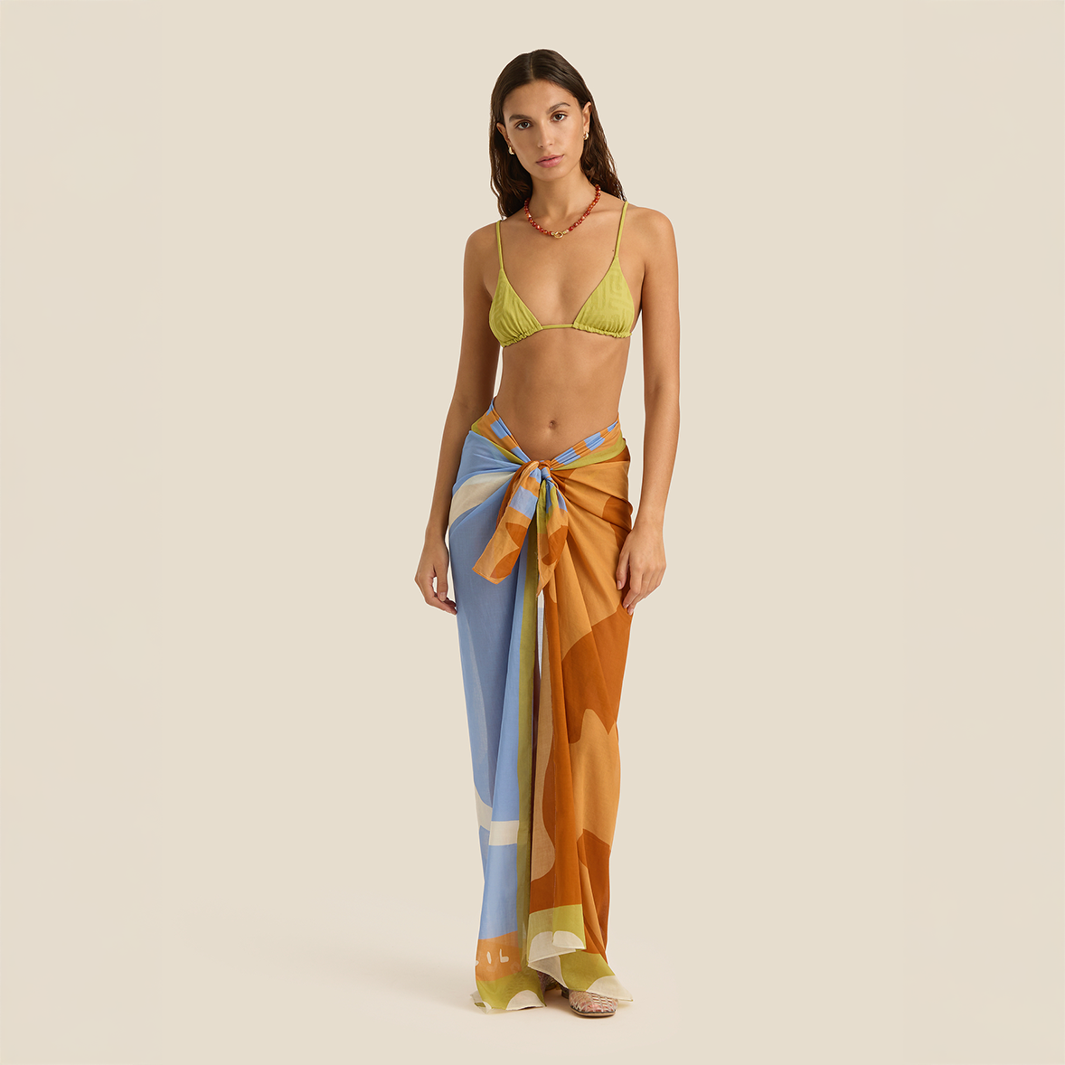 The Square Pareo by Soleil Soleil is the signature piece, cut as a perfect square of lightweight organic cotton for effortless over-swim styling. Wear tied as a mini or midi cover-up, or fold into quarters as a smaller square scarf.