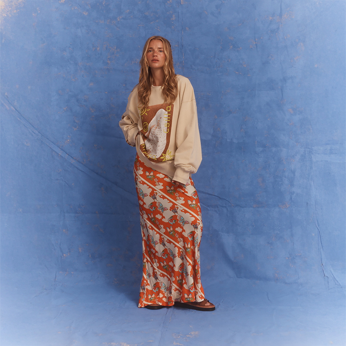 Designed for a relaxed fit this fits true to size. Both models wear a size S. Sterre campaign model is 167 cm & Grace studio model is 170 cm.