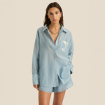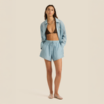 The Abbey Short in Ripple by Soleil Soleil is a relaxed silk‑cotton short with a comfortable elastic drawstring waist and side pockets, designed to pair seamlessly with the Keaton Shirt in Ripple.