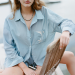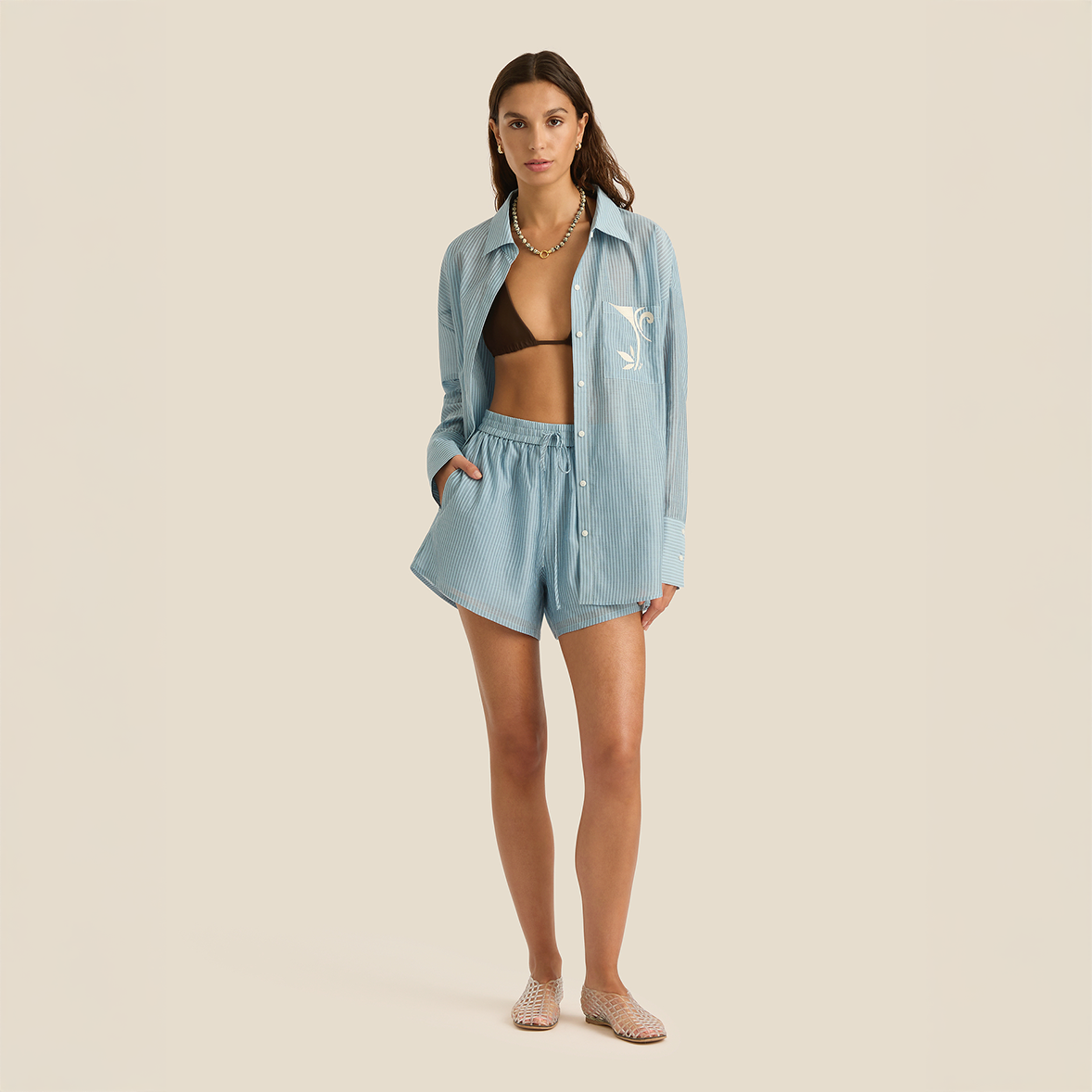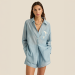 Throw over your swimsuit unbuttoned, or pair with the Abbey Short in Ripple for a fun Summer set.