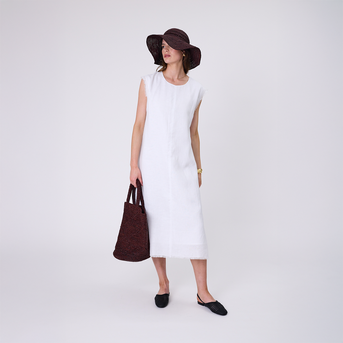 An essential for sunny days, the Mykonos Wide Brim Hat in the Chocolate colour-way from Marlow offers effortless sophistication wherever you go. Expertly handwoven and hand-dyed by artisans in Madagascar, each piece is crafted from 100% natural raffia, giving it a beautifully unique finish. The wide brim creates a relaxed yet refined look, while open-weave panels through the crown add texture and breathability.