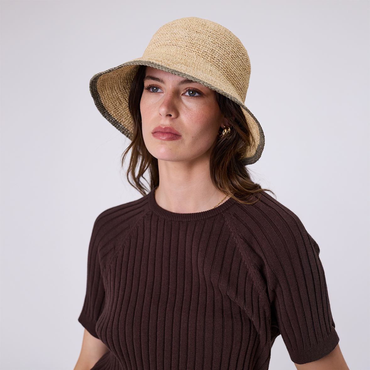 From beach days to BBQs, the Positano Bucket Hat in the Natural & Sage colour-way from Marlow is your chic essential for sunny days. Made from 100% Raffia, this bucket hat is skillfully handwoven and hand-dyed by artisans in Madagascar.