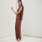A lightweight, relaxed-fit pant designed for comfort and soft structure. The Poppy Pant from Arcaa features subtle side pleats and an elastic waistband for effortless wear. Knitted in a breathable linen-cotton blend that moves naturally with the body.