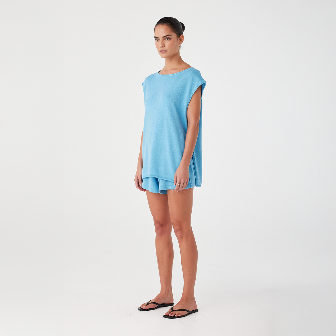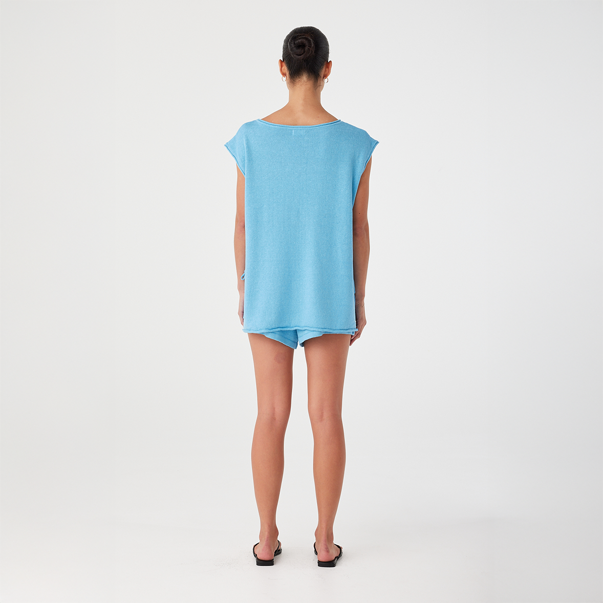 The Poppy Top from Arcaa is here in the new Summer colourway, Cyan. Crafted from a lightweight linen-cotton blend, it’s designed with an open, generous shape and soft structure that moves with the body and made to worn with the perfectly paired Paige Shorts.
