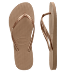 The slim in Rose Gold are Havaiana's classic womens style and a must for everyday! Featuring a skinny rubber strap and soft, durable sole.