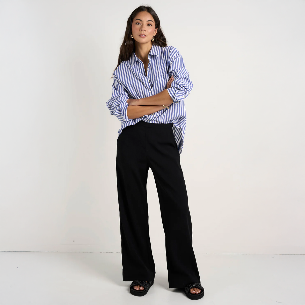 The Best Life Wide Leg Pant from Among the Brave is a refined wide-leg style designed with a clean, tailored finish. Featuring a fitted waistband and a flattering silhouette through the leg, it offers an elevated option for both day and evening dressing.