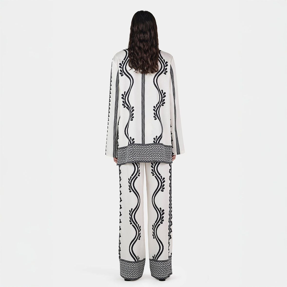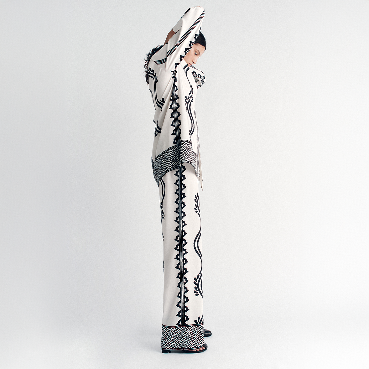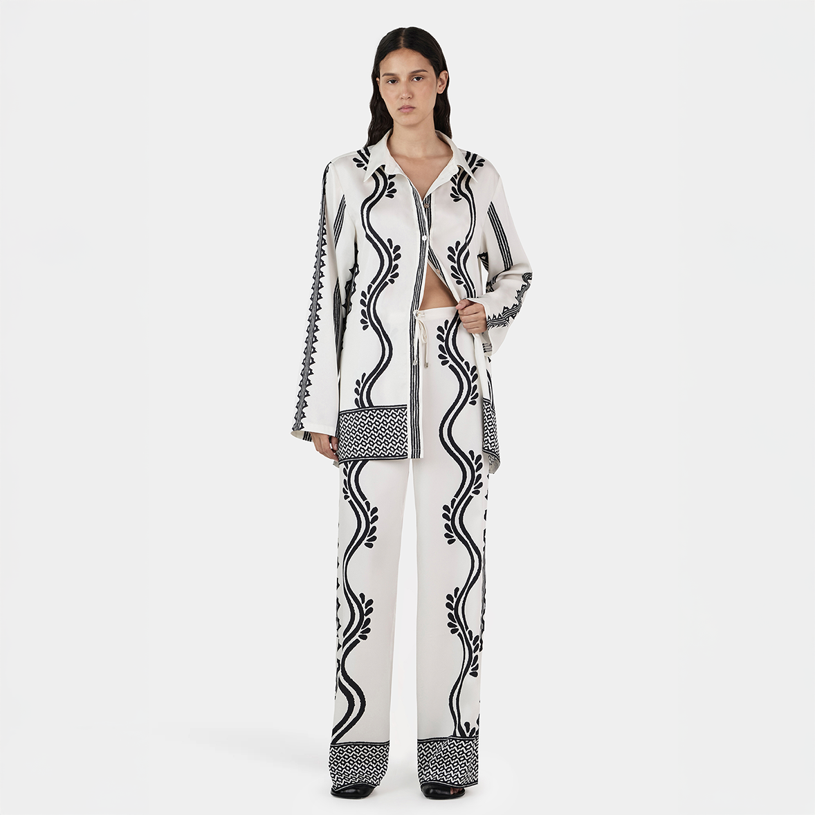 The Allora Shirt by Hansen & Gretel is their classic oversized button-down shirt in this season's Geo Waves print. The wide kimono style sleeve gives a relaxed vibe to a tailored classic. Versatile to wear with any of your wardrobe favourites, this shirt will be your seasonal go-to.