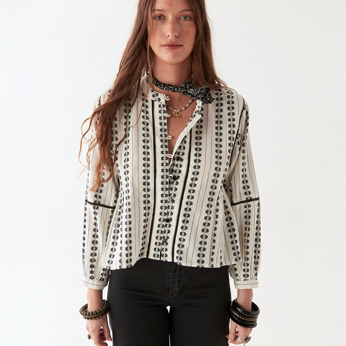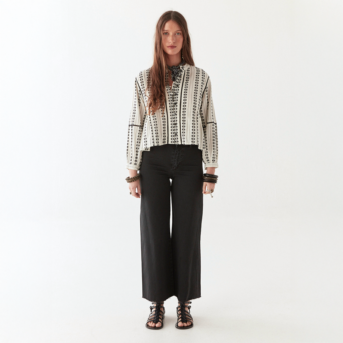 The Consuelito Blouse by Maison Hotel is a fearless blend of bohemian soul and rock‑and‑roll rebellion—the kind of blouse born of golden-hour legends and smoky café stories. Crafted in breathable cotton, with cropped ease, soft pleats, and sleeves gathered with a pinch of attitude.
