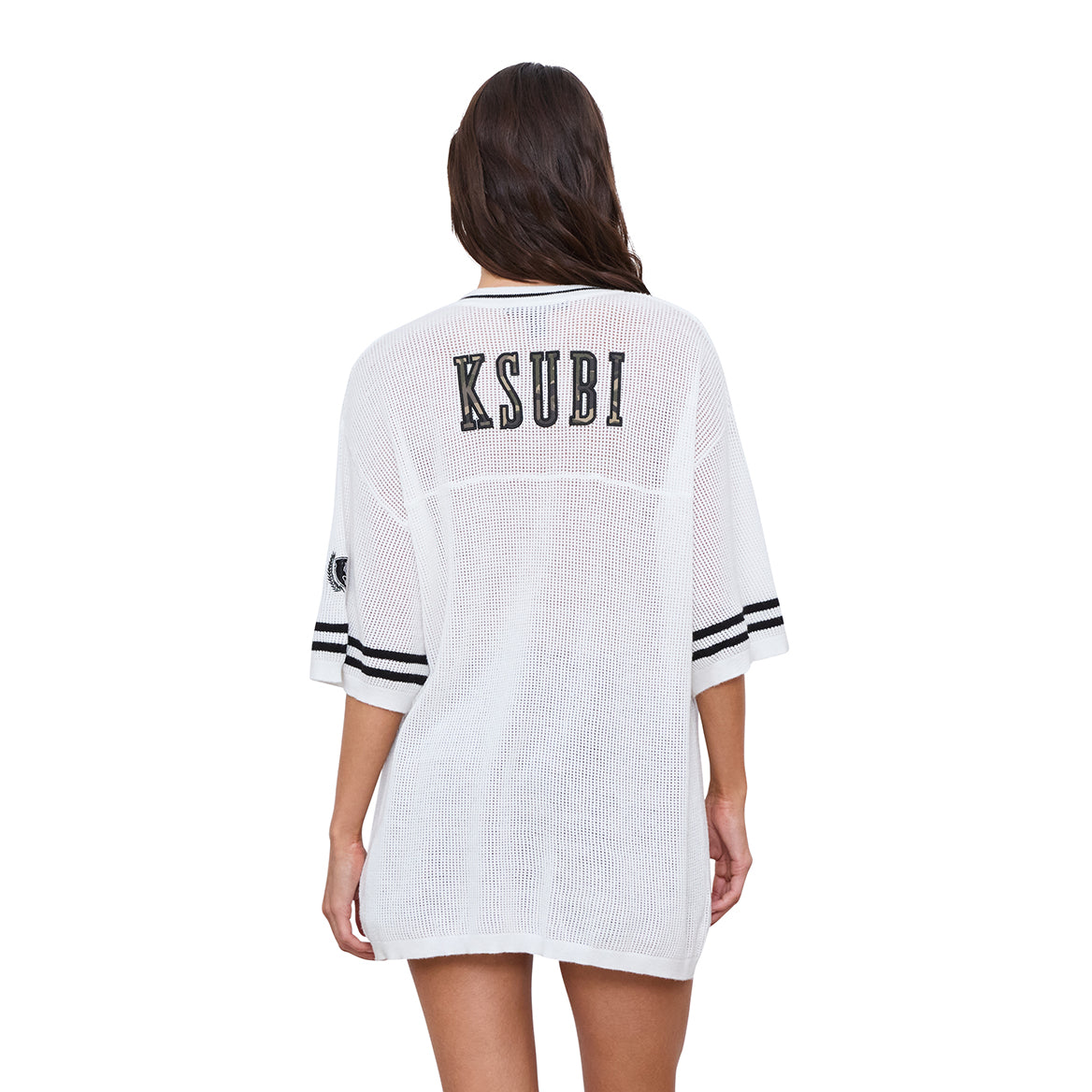 A relaxed take on everyday dressing, the Ksubi Derby Boyfriend S/S Jersey brings an easy, borrowed-from-the boy feel with a refined, paired-back finish. In a soft jersey with camo details, it drapes with a relaxed ease while still feeling polished enough for everyday wear. The ribbed V-neck and subtle Ksubi detailing keep it clean and tonal - an effortless throw-on with denim, tailored pants or layered under soft outerwear.